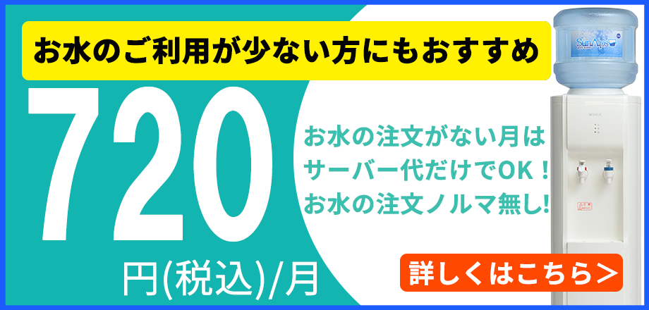 お水の注文がない月は720円のサーバー代のみでご利用可能です!